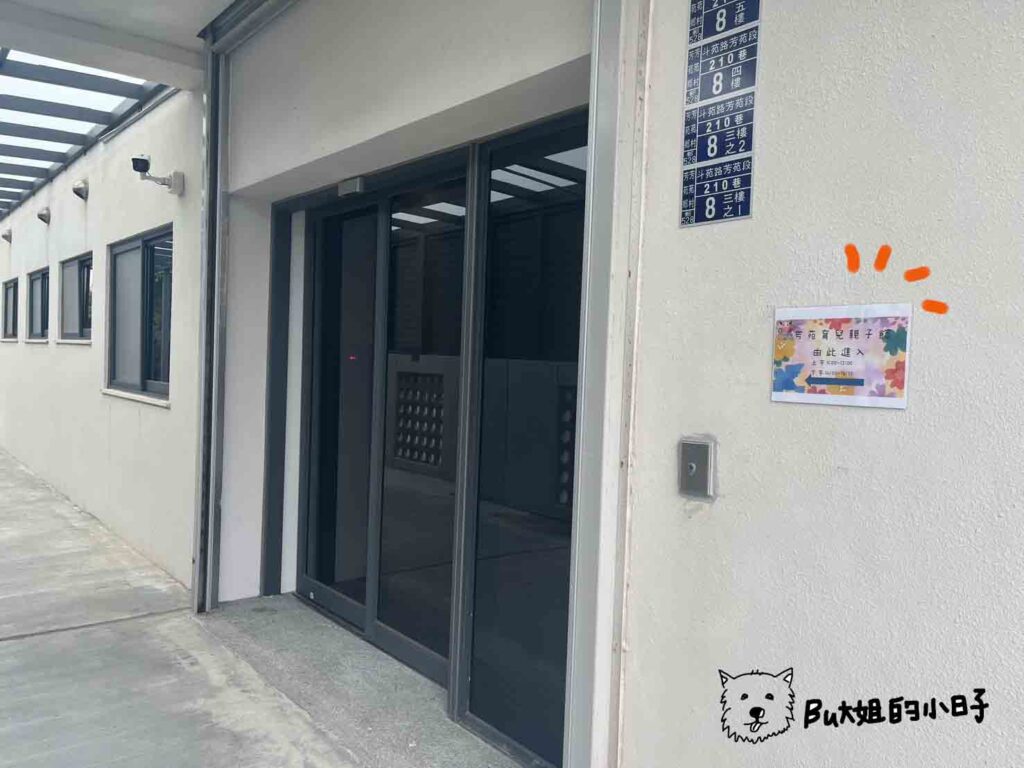 芳苑親子館目前無明顯招牌,只有在衛服館的門口,張貼一張小小的海報,以便到館民眾辨識。