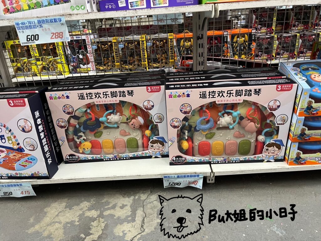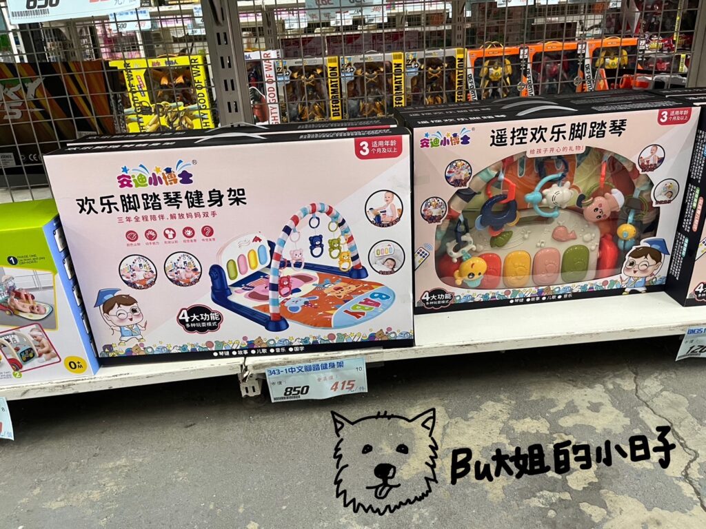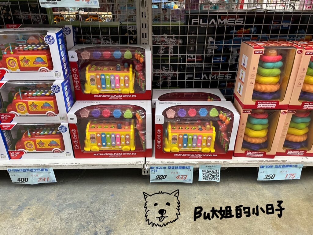 倉庫內玩具適合對象,以比較大的小朋友為主。因為寶寶現在4個月,較偏好有聲音的玩具,寶寶可能會喜歡的玩具,可能是以下這幾項,供參考(2024年7月初攝):